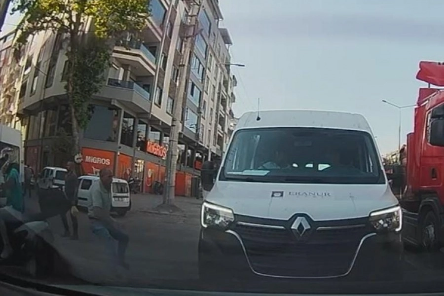 Çarpmanın etkisiyle yere savrulan adam kazadan kıl payı yara almadan kurtulurken, taraflar arasında kısa süreli bir tartışma yaşandı.