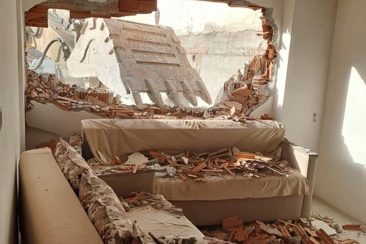 Edinilen bilgilere göre, temel kazısı yapılan inşaat alanında çalışan iş makinesi, bitişikte bulunan binanın duvarına zarar verdi.
