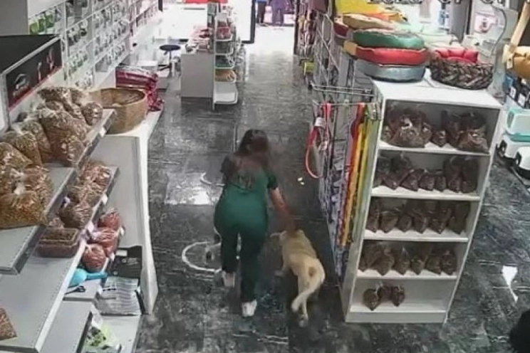 O anda ise bir veteriner çalışanı, tedavisi devam eden bir köpeği içeride bırakmayıp takılı olan serumla birlikte dışarı çıkardı, o anlar ise işyeri kamerası tarafından saniye saniye görüntülendi.