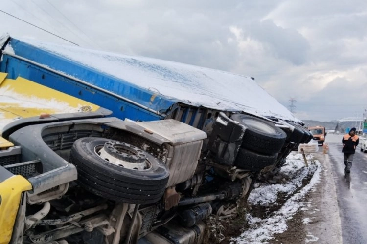 Olay dün gece Orhangazi - İznik güney yolu üzeri Gemiç Mahallesi Kavşağı yakınlarında meydana geldi. Alınan bilgilere göre İznik'ten Orhangazi yönüne gitmekte olan bir tır yoğun kar yağışı nedeniyle kayganlaşan yolda sürücünün kontrolünden çıktı ve yol kenarına savrularak devrildi.
