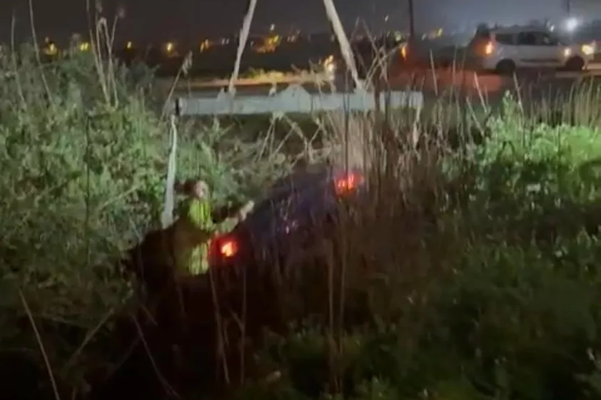 Seyir halindeki otomobil henüz bilinmeyen bir nedenle sürücünün direksiyon hakimiyetini kaybetmesiyle kontrolden çıkarak yol kenarındaki dereye dalarak devrildi.
