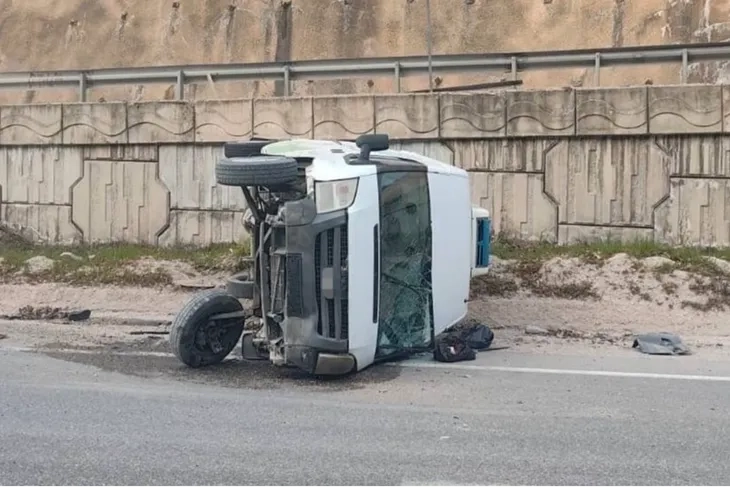 İnegöl'den Bozüyük istikametine seyir halinde olan Fatih M. (43) yönetimindeki 34 BZM 395 plakalı minibüs, kontrolden çıkarak takla atıp yan durdu.
