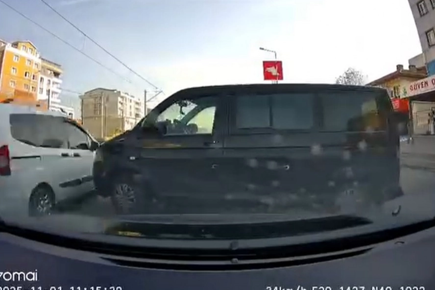 Bir hafif ticari araç da minibüsün çarpmasından kıl payı kurtuldu. Durumu fark eden sürücü, koşarak minibüsün yanına gelip direksiyona geçerek aracı kontrol altına aldı. Yaşananlar, bir otomobilin araç içi kamerasına yansıdı.