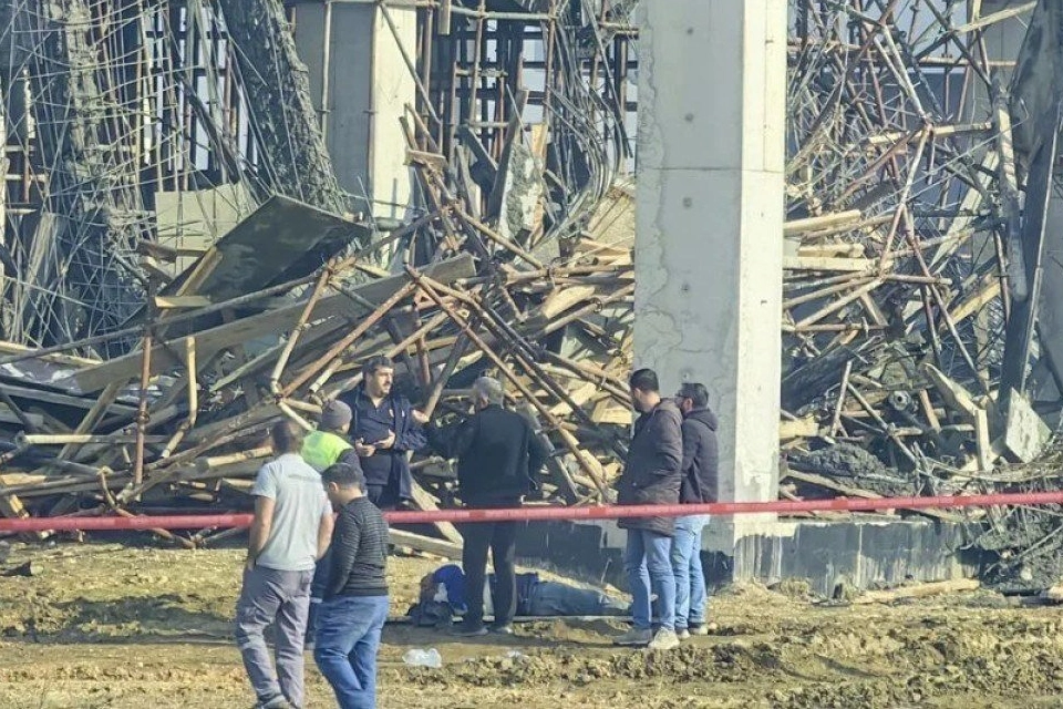 Akhisar Mahallesi 161'inci Sokak'taki fabrika inşaatının 2'nci katında beton dökülürken iskele çöktü.
