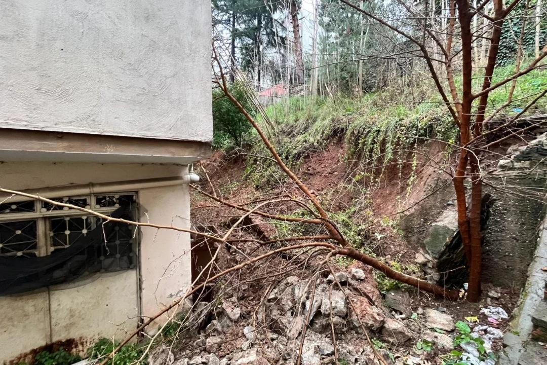 Edinilen bilgilere göre, günlerdir aralıksız devam eden yağışlar nedeniyle yumuşayan toprak kayarak istinat duvarının yıkılmasına neden oldu. Yıkım sonucu binanın bahçesinde bulunan ağaçlar kökünden sökülerek yapıya doğru devrildi.