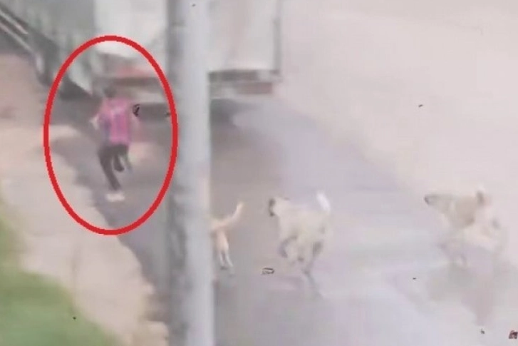 Sürü halinde gezen başıboş sokak köpekleri, sokakta yürüyen çocuğa saldırdı.