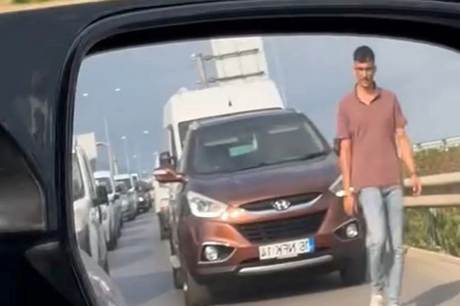 Bunu gören bir vatandaş ise, bulunduğu araçtan inerek emniyet şeridinden yürümeye başladı.
