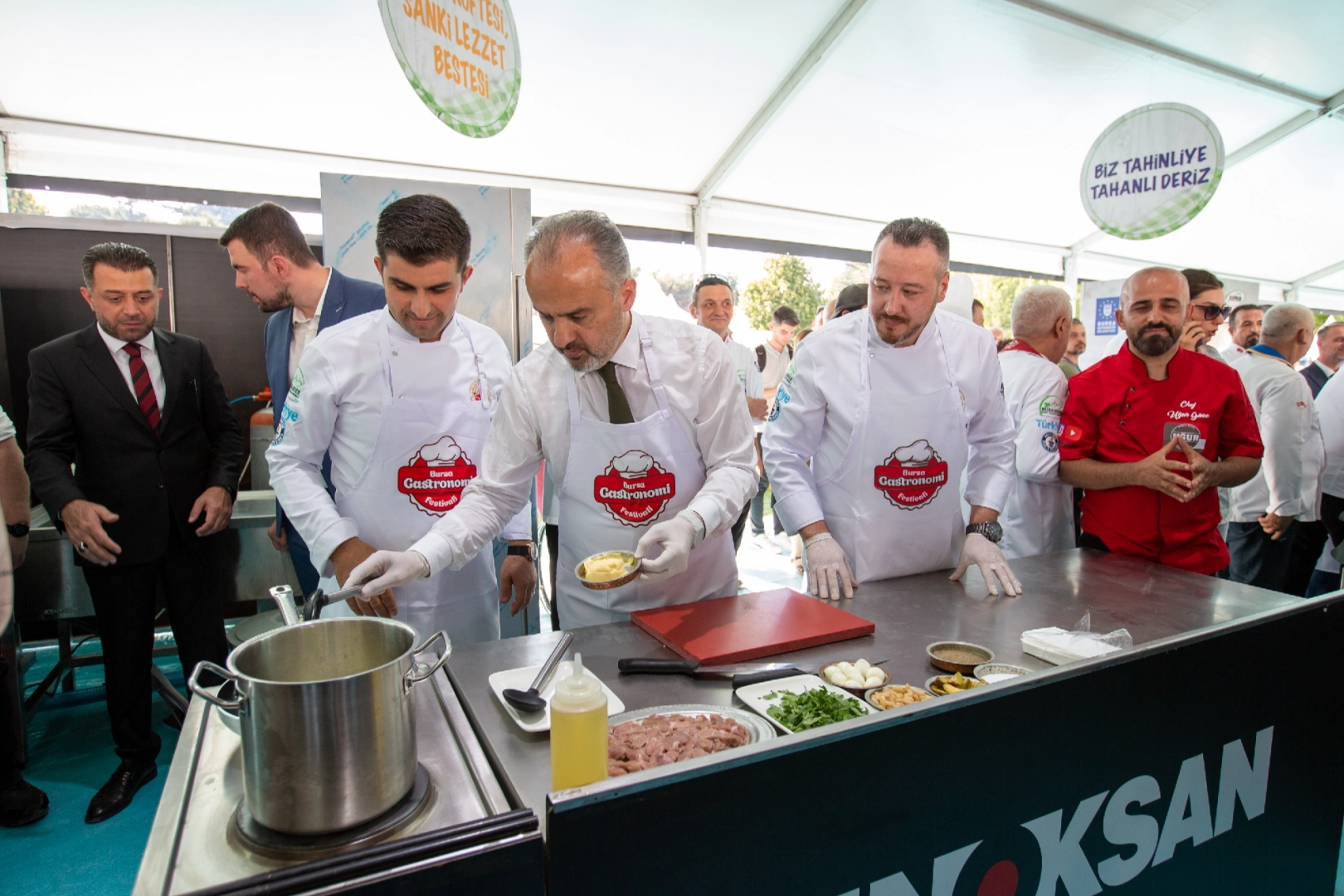 Festival alanını gezen Bursa Büyükşehir Belediye Başkanı Alinur Aktaş, festivale katılan tüm paydaşlara, destek veren kurum ve kuruluşlara teşekkür etti. Bursa’nın bir tarihi şehri, kültür şehri, medeniyet şehri olduğunu hatırlatan Başkan Aktaş, “Bursa faklı medeniyetlere ev sahipliği yapmış. Özellikle Osmanlı'yı kuran şehir. Anadolu'nun değişik şehirlerinden göç alan bir şehir ve bu Bursa'nın turizmini de gastronomisini de ciddi şekilde etkiliyor. Biz bunu iki yıldır düzenlediğimiz gastronomi festivaliyle daha da geliştiriyoruz. Bu yıl ikincisinde geçen yıla göre daha fazla misafiri ağırlama imkanına sahip olduk. Gerek şehir dışından, gerek yurt dışından katılan misafirlerimizin oluşturduğu bu kalabalıkların şehrimizin cadde ve sokaklarına, gastronomi sektörüne çok ciddi yansıdığına şahit olmaktan dolayı son derece mutluyum. ‘Bursa çok güzel, sen de gelsene dedik’ ve çağrımıza da bütün ülke insanı, hatta yurt dışından bile dostlarımız cevap verdiler. Ve yine Bursa dolu dolu günleri yaşadı. Şimdiden daha üçüncüsünün heyecanıyla alakalı hem katılımcılarımız hem de beraberinde buradan istifade eden insanlar çok meraklılar biliyorum. Tekrar festivalimizin hayırlı uğurlu olması temennisiyle destek veren katkı veren herkese yürekten teşekkür ediyorum. Ama unutmayın ki Bursa 365 gün gastronomi şehridir. Bursa'nın her lokantasında, restoranımızda rahatlıkla bu lezzetleri tatmanız mümkün” dedi.