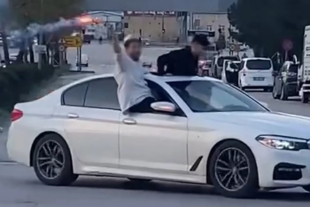 Bursa'da düğünde konvoy yapan sürücüler hem kendi canlarını hem de trafikteki diğer vatandaşları tehlikeye attı.