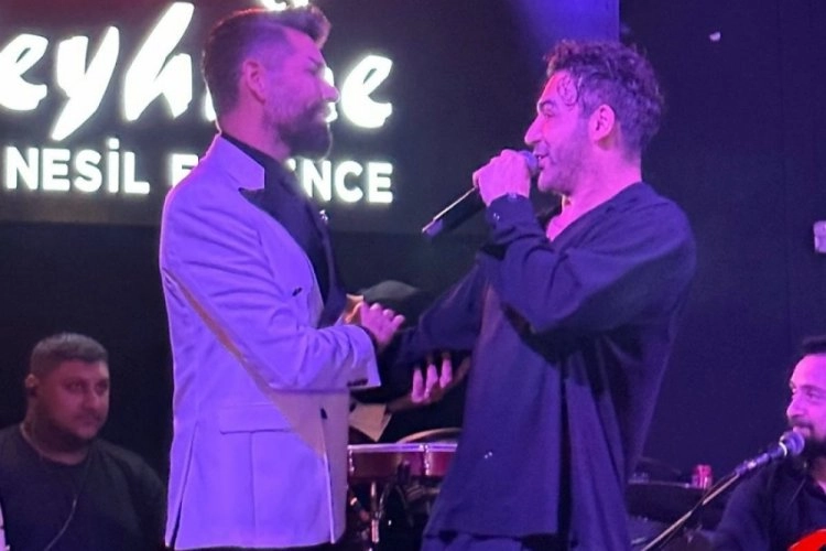 Meslektaşına sürpriz yapan Emre Kaya, sahneye çıkıp Mehmet Çevik'le düet yaptı.