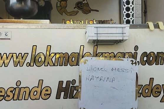 Tatlıcı ile anlaşan Işık, Arjantin'in yıldızı Lionel Messi'nin Fransa karşısında gol atması için 2 bin kişilik lokma dağıtımı yaptırdı Lokmacı aracındaki 'Lionel Messi hayrına' yazılı kağıt ise dikkat çekti.