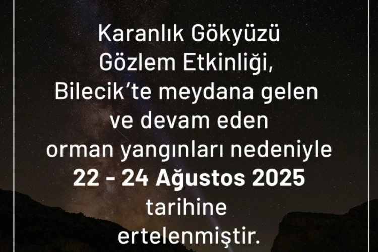 Bursa Eskişehir Bilecik Kalkınma Ajansı (BEBKA) tarafından yapılan açıklamada, "Bursa Eskişehir Bilecik Kalkınma Ajansı (BEBKA) olarak, katılımcılarımızın, bölge halkının ve doğanın güvenliğini öncelik kabul etmekteyiz. Bu doğrultuda alınan erteleme kararı, hem bölgede yürütülen yangınla mücadele çalışmalarının sekteye uğramaması hem de etkinliğin doğaya ve çevreye duyarlı bir şekilde gerçekleştirilebilmesi amacıyla hayata geçirilmiştir. Yaşanan yangınlarda hayatını kaybeden vatandaşlarımıza ve görevleri başında şehit düşen tüm kahramanlarımıza Allah'tan rahmet, ailelerine ve milletimize başsağlığı diliyoruz. Yangınlardan etkilenen tüm vatandaşlarımıza ve özellikle Bilecik ile Eskişehir halkına geçmiş olsun dileklerimizi iletiyor; doğal yaşamın en kısa sürede eski sağlığına kavuşmasını temenni ediyoruz. Gökyüzüne birlikte bakacağımız yeni tarihlerde, doğayla yeniden buluşacağımız bu anlamlı etkinlikte sizleri aynı coşku ve heyecanla ağırlamayı sabırsızlıkla bekliyoruz" ifadelerine yer verildi.