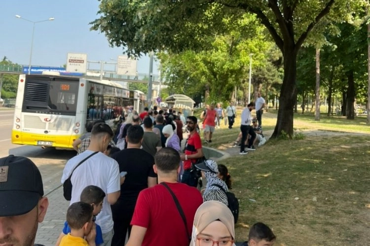 Bursa-Gemlik otobüsü bekleyen vatandaşlar uzun kuyruk oluşturdu. Sonu gözükmeyen kuyrukta vatandaşlar, sabırla saatlerce beklerken, sıra giderek artmaya devam etti.