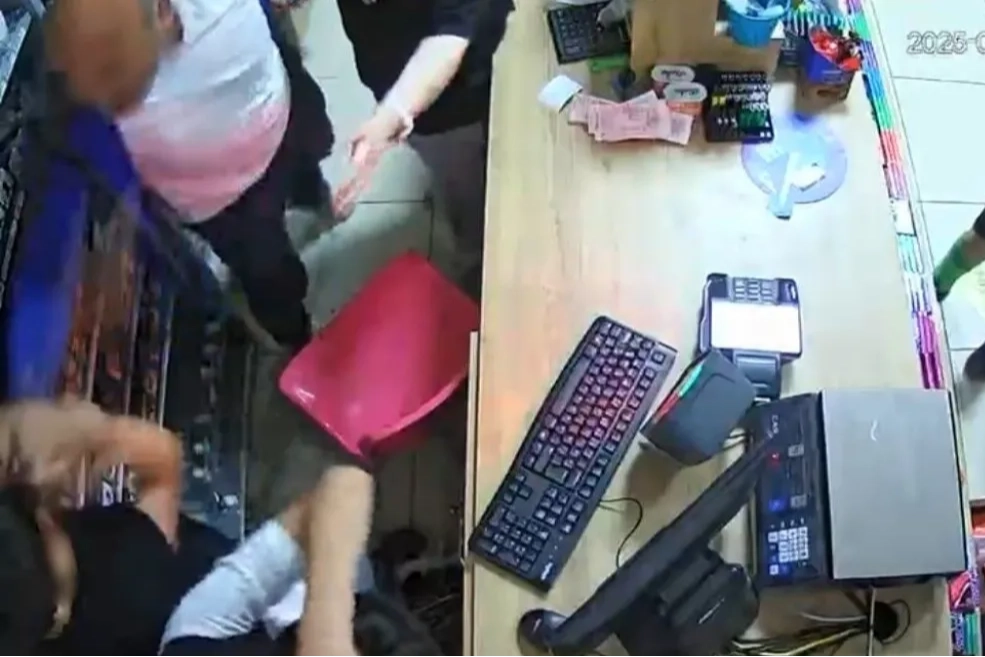 Görüntülerde, E.T. ile Y.T.’nin marketin kasasında oturan kadının arkasına geçip saklanmaya çalıştığı, H.E.’nin ise çocukların yanına gelerek, "Kemiklerinizi kırarım sizin” dedikten sonra tokat attığı görüldü.
