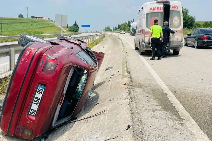 Kaza saat 12.30 sıralarında Balıkesir- Bursa kara yolu Tatkavaklı mevkiiinde meydana geldi. N.K. yönetimindeki 06 RGY 60 plakalı otomobil, sürüsünün direksiyon hakimiyetini kaybetmesiyle yoldan çıkarak refüje devrildi. Yoldan geçen diğer sürücülerin ihbarıyla olay yerine itfaiye ve sağlık ekipleri sevk edildi.