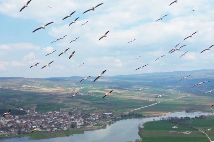 İnegöl Belediyesi Basın Halkla ilişkiler ekipleri, pelikan sürüsünü drone'la görüntüledi.