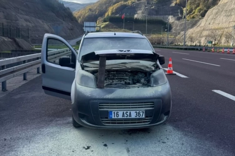Olay bugün öğle saatlerinde Orhangazi tüneli çıkışında meydana geldi. İstanbul yönüne doğru gitmekte olan hafif ticari aracın motor bölümünden dumanlar ve sonrasında alevler yükseldi.