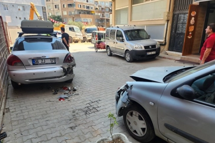 Sokak içine girerek kontrolsüz bir şekilde seyreden otomobil, yol kenarında park halinde bulunan dört araca çarparak durabildi.