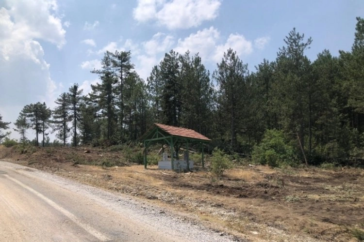 Bursa'nın Harmancık ilçesinde çıkan orman yangını, geniş bir alanı küle çevirirken, alevlerin ortasında kalan bir mezarın etrafındaki detay dikkatlerden kaçmadı.