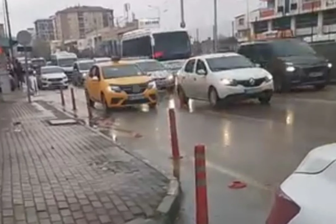 Bursa'da Ankara yolu üzerinde trafikte ilerleyen bir taksi sürücüsü, yoğunluğa rağmen geri geri giderek hem kendi canını hem de diğer sürücülerin güvenliğini tehlikeye attı.