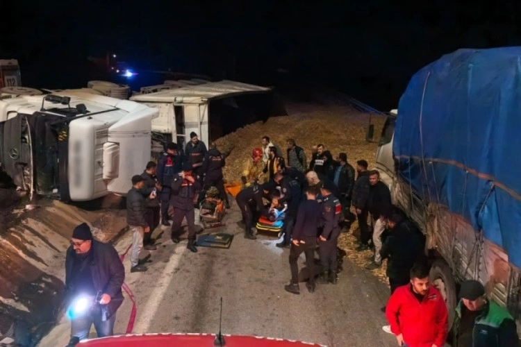 Kaza, saat 22.00 sıralarında İnegöl Mobilya İhtisas Organize Sanayi Bölgesi yolu üzerinde meydana geldi. Mobilya Organize Sanayi Bölgesi'nde faaliyet gösteren bir orman ürünleri fabrikasından yüklediği talaşı ilçe merkezine taşıyan Emrah Aydın (29) yönetimindeki 16 AUC 722 plakalı TIR, yokuş aşağı virajlı yolda sürücüsünün kontrolünden çıktı. Yağmur suyu kanalına düşen TIR, devrildi. Kaza sırasında araçtan fırlayan sürücü, TIR'ın dorsesinin altında kalarak sıkıştı. Yol trafiğe kapanırken, bölgede uzun araç kuyrukları oluştu.