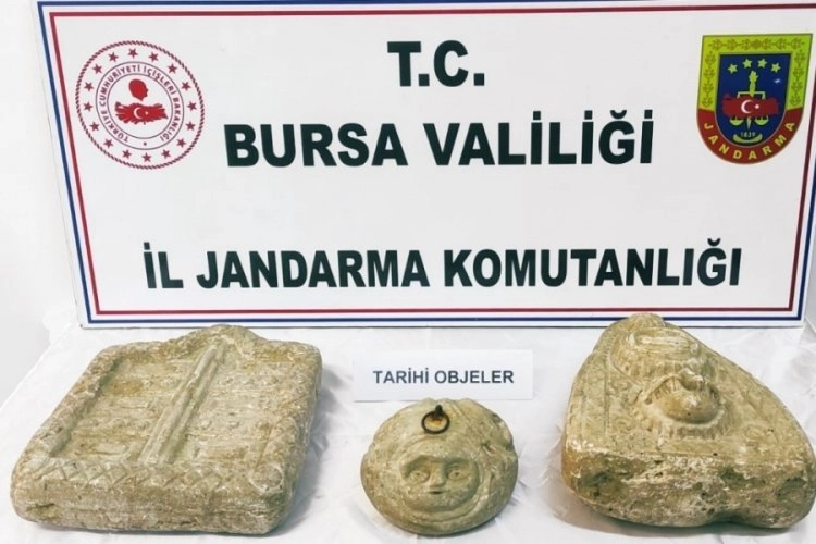 Edinilen bilgilere göre, Gürsu İlçe Jandarma Komutanlığı ve İstihbarat Şube Müdürlüğü ekipleri, Kumlukalan Mahallesi'nde şüphe üzerine bir aracı durdurdu. Alınan arama kararı doğrultusunda araçta yapılan aramada, tarihi eser olduğu değerlendirilen (3) adet obje ele geçirildi.