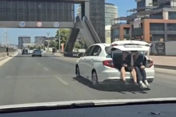 Osmangazi ilçesi İstanbul Yolu üzerinde seyir halindeki bir otomobilde yolcular bagajda taşındı. Bagaj kapısının da açık olduğu görülürken yolcular düşmemek için kapıya tutundu. Kilometrelerce süren tehlikeli yolculuk başka bir sürücünün kamerasına saniye saniye yansıdı.