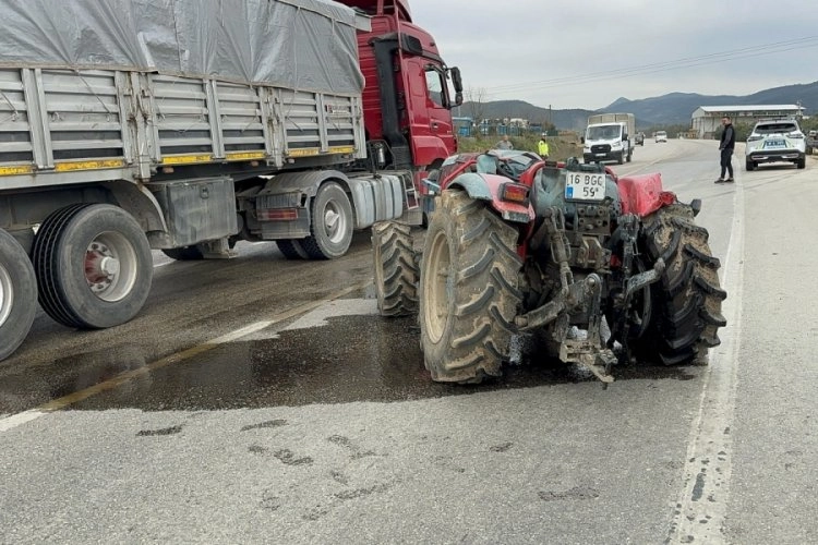 Alınan bilgilere göre, Fahrettin A.'nın kullandığı 16 AVM 369 plakalı tır ile Seyfettin A.'nın kullandığı traktör henüz bilinmeyen bir nedenle çarpıştı.
