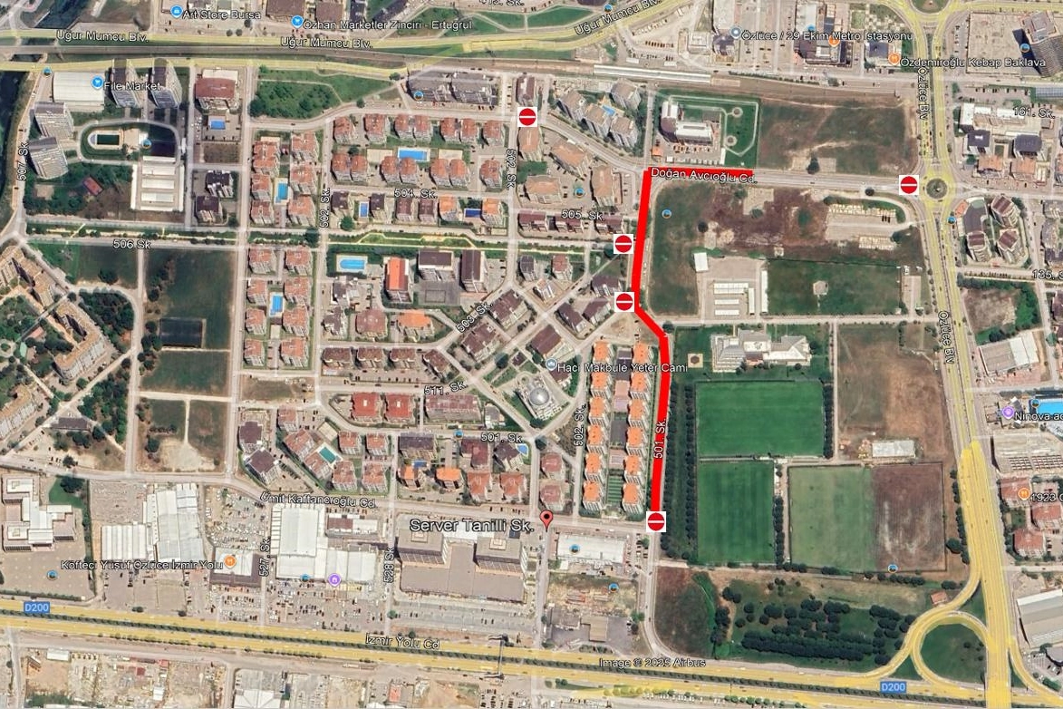 BUSKİ Genel Müdürlüğü Kanalizasyon Dairesi Başkanlığı tarafından yapılacak çalışmalar kapsamında Nilüfer İlçesi 29 Ekim Mahallesi Doğan Avcıoğlu Caddesi üzerinde 07 Ocak 2026 – 15 Ocak 2026 tarihleri arasında yağmur suyu deplase imalatı yapılacaktır. Söz konusu imalatların güvenli ve sağlıklı bir şekilde gerçekleştirilebilmesi amacıyla gerekli trafik izinleri alınmış olup, çalışma süresince Doğan Avcıoğlu Caddesi araç trafiğine kapatılacaktır. Çalışmalar süresince sürücülerin trafik işaret ve işaretçilerine uymaları gerekmektedir.