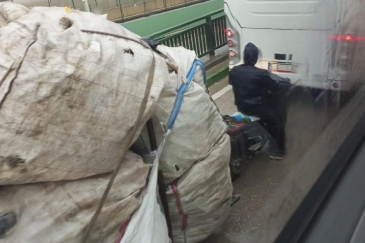 Bursa Osmangazi Korupark Batçık civarında yabancı uyruklu şahış motosikletin arkasına römork taktı.