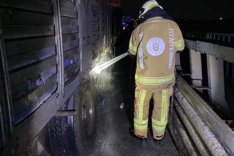 Kısa sürede olay yerine gelen itfaiye ekipleri, tır'ın lastiklerinde başlayan yangına müdahale ederek kontrol altına aldı.