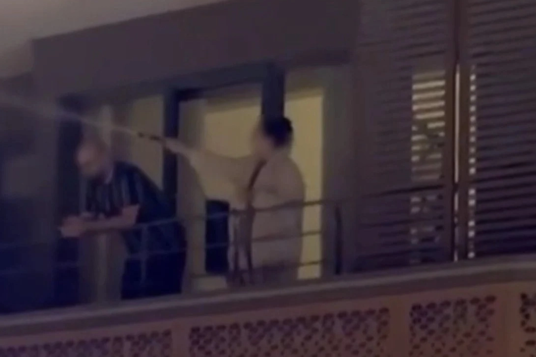 Duruma sinirlenen ev sahipleri, araçların üzerine balkondan su sıktı.