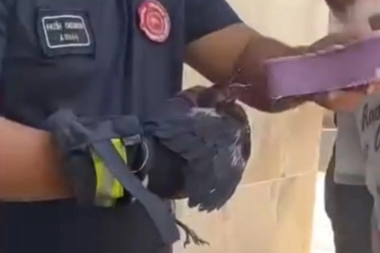 Günlerdir aç ve yorgun olduğu tahmin edilen yavru karga, kurtarılmasının ardından yeniden doğaya salındı. Olayı izleyen vatandaşlar duygu dolu anlar yaşarken, kurtarma anı cep telefonu kamerasına saniye saniye yansıdı.