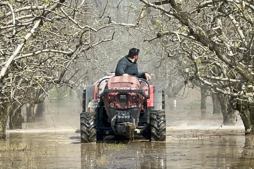 Armut bahçesine ilaçlama yapan üretici Turgay Koç ise yaşadıklarına zorluğa dikkati çekerek, "Traktörlere, bize, çiftçiye, meyve ağaçlarına yazık. 9 dönüm armut bahçemin büyük bölümü su altında. Bir hafta 10 gün su çekilmezse kurayacak. Önümüzdeki günler de yağışlı görünüyor, çaresisiz" diye konuştu.