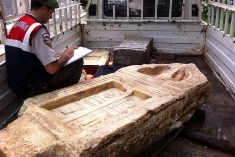 Bursa İl Jandarma Komutanlığı ekipleri, Orhaneli-Harmancık kara yolunda bir kamyoneti şüphe üzerine durdurdu. Araçta yapılan aramada brandanın altında aslan başı heykeli, Roma Dönemi'ne ait olduğu düşünülen tapınak taşı ile mezar steli ve rölyef ele geçirildi. Jandarma, araçta bulunan 3 kişiyi gözaltına alırken, ele geçirilen tarihi eserleri ise Bursa İl Müze Müdürlüğü'ne teslim edildi.