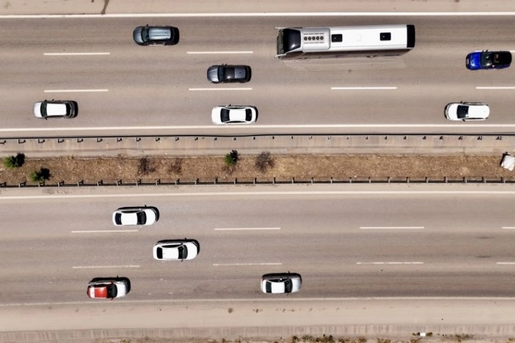 Yollardaki yoğunluk dronla havadan kaydedildi.