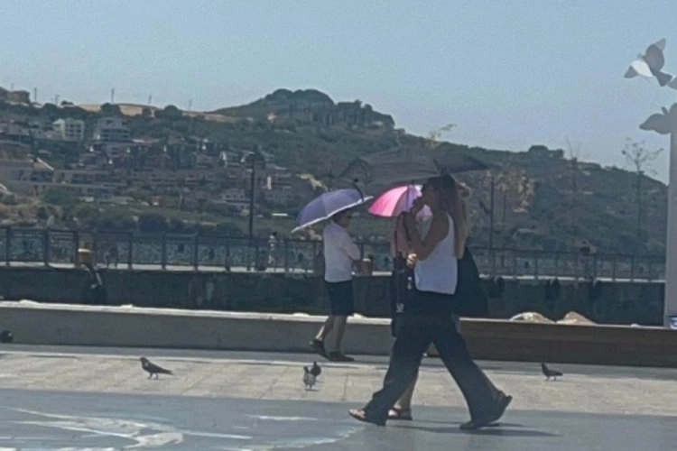 Hal böyle olunca vatandaşlar Gemlik'in sahil kenarlarında sıcak havadan korunmak için şemsiyeleriyle dolaştı.