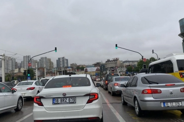 Bursa'da kent içi trafik çift yönlü olarak tıkandı.