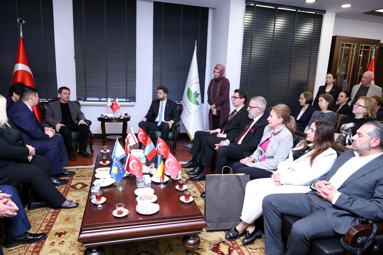 Osman Gazi’yi Anma ve Bursa’nın Fethi’nin 700. yıl dönümü etkinliklerine katılmak üzere kardeş şehirlerden Bursa’ya gelen misafirler, Bursa’nın fethi yürüyüşü öncesinde Osmangazi Belediyesi’ni ziyaret etti. Arhangay, Mamuşa, Stari Grad, Gazi Mağusa, Mehmetçik belediye başkanları ve heyetleriyle Romanya Köstence’den gelen iş kadınlarının yer aldığı konuklar, Osmangazi Belediye Başkanı Erkan Aydın ile bir araya gelerek, Bursa’da bulunmaktan duydukları memnuniyeti dile getirdi.
