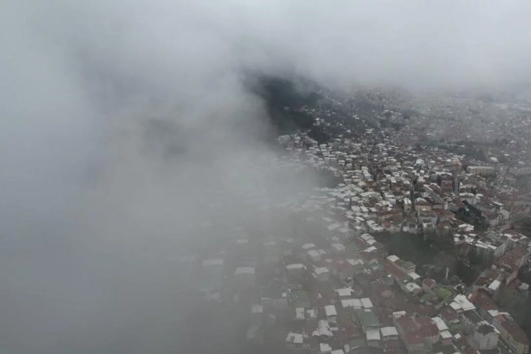 Bursa'nın Gürsu ilçesinde akşam saatlerinden itibaren etkili olan sis, özellikle yüksek rakımlı bölgelerde yoğunluğunu artırdı. İlçenin üst kesimlerinde etkisini daha da hissettiren sis nedeniyle görüş mesafesi yer yer birkaç metreye kadar düştü.