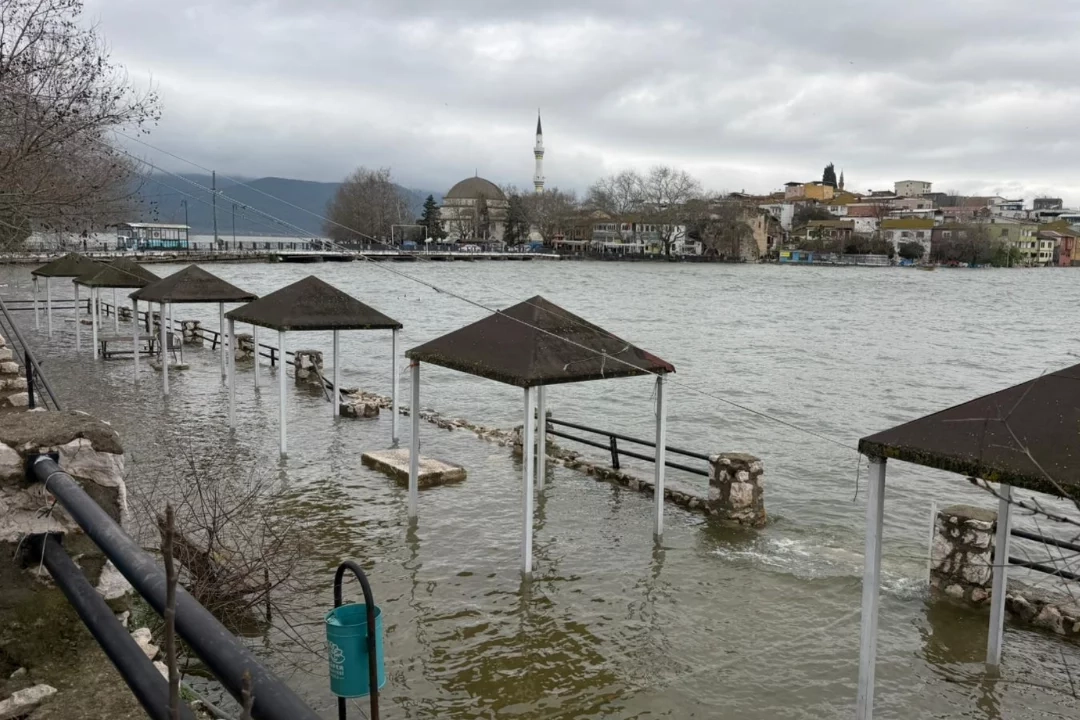 Gölyazı'da son günlerde Bursa genelinde etkili olan yağışların ardından göl seviyesi ciddi oranda arttı.