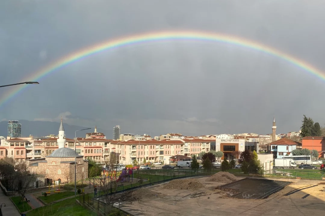 Öğleden sonra etkisini gösteren yağmur bulutlarının dağılmaya başlamasıyla birlikte gökyüzünde beliren gökkuşağı, vatandaşların ilgisini çekti. Şehrin birçok noktasından görülebilen gökkuşağı, özellikle yüksek binalar ve Uludağ silüetiyle birlikte kartpostallık görüntüler oluşturdu. Kısa süreliğine görülen doğa olayı, fotoğraf çekmek isteyen vatandaşlar tarafından cep telefonlarıyla görüntülendi.