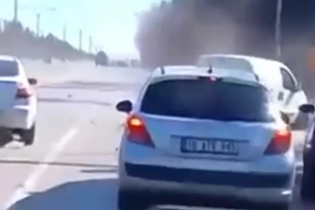 Bursa'da kırmızı ışığı son anda fark eden sürücülerin ani fren yapması zincirleme kazaya yol açtı. Kaza anı bir motosiklet sürücüsünün kask kamerasına saniye saniye yansıdı.