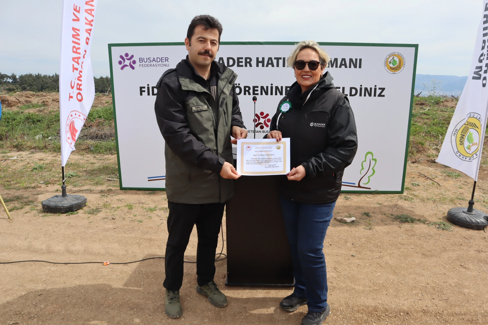 Birleşik Uluslararası Sağlık ve Eğitim Gönüllüleri Dernekleri Federasyonu (BUSADER)'in Mudanya'nın Göynüklü mahallesinde, 10 bin ağaçtan oluşturacağı BUSADER Hatıra Ormanı için ilk fidanlar dikildi.