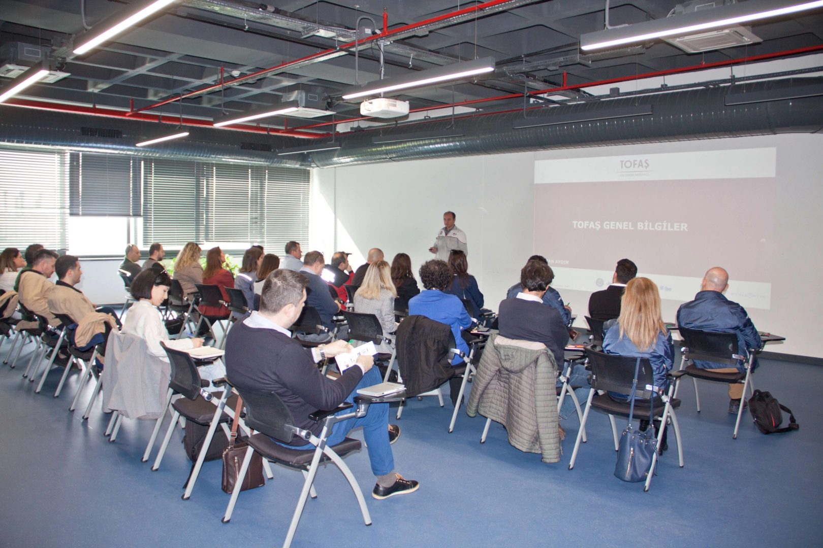 TOFAŞ Acil Durum Yönetici Yardımcısı Ayhan Aydın, TOFAŞ bünyesinde oluşturulan TAKUT ekibinin 7/24 acil duruma müdahale edecek donanım ve yeterliliğe sahip olduğunu anlatarak, afetlere karşı hazırlık aşamalarını katılımcılara aktardı. Aydın, tatbikatlar yaparak acil durumlara karşı sürekli hazır olmak için uğraştıklarını belirterek, İtalya’dan özel olarak getirttikleri arama ve kurtarma aracı hakkında da bilgiler verdi. Aydın, doğu bölgelerinde gerçekleşen depreme, gün içinde bu araçla bölgeye ulaştıklarını belirterek, araçta yer alan teknik özellikler ve ekipmanlara ilişkin de detayları anlattı.