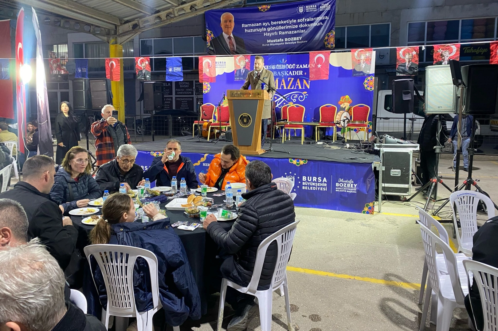 Bursa Büyükşehir Belediyesi Başkanvekili Yalçın Işıkyıldız, dayanışmanın, birliğin ve bereketin ayı olan Ramazan’da aynı sofrada buluşmaktan büyük mutluluk duyduklarını dile getirdi. 17 ilçede iftar programları düzenlediklerini, 3 farklı iftar noktasında her gün binlerce vatandaşa ulaştıklarını, 15 farklı noktada iftariyelik dağıtımı yapıldığını belirten Işıkyıldız, Ramazan’ın bereketini tüm Bursalılarla paylaştıklarını ifade etti.