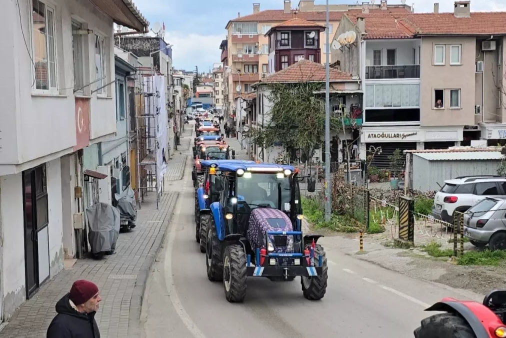 BURSA'nın Mudanya ilçesinde, belediyeye ait arazilerin satışa çıkarılmasına karşı çıkan mahalleli karara tepki gösterdi. Arazilerinin mahallelerine ait olduğunu iddia eden çiftçiler, traktörleriyle konvoy oluşturup eylem yaptı.