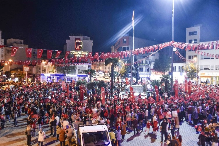 VATANDAŞLAR ELLERİNDE BAYRAKLARLA COŞKUYA ORTAK OLDU