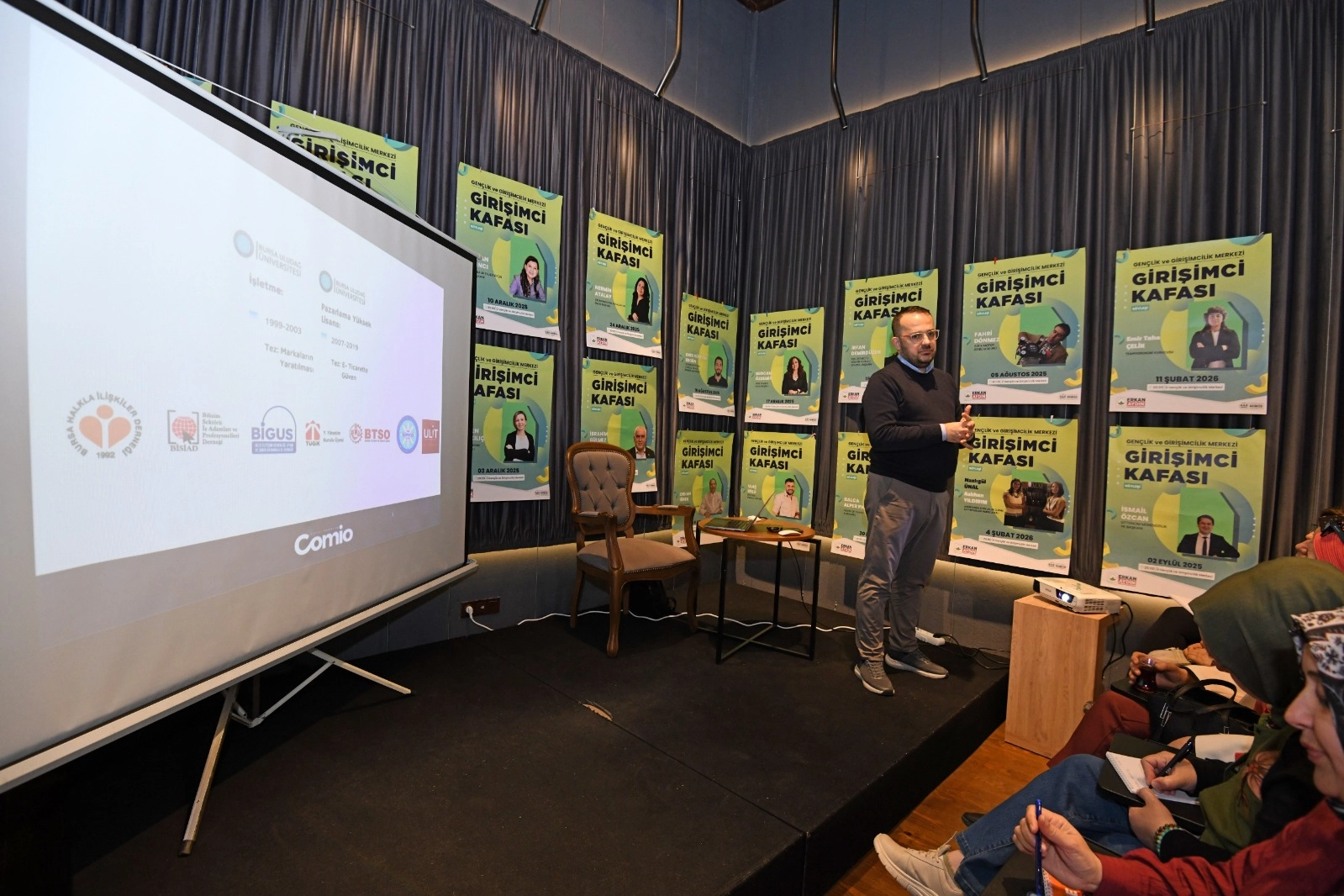 Programın ilk dersinde Comio Dijital Pazarlama kurucu ortağı Mustafa Sönmezay, katılımcılarla bir araya geldi. Sönmezay, “Dijital Girişimcilikte Fikir ve İş Planı Geliştirme” başlığı altında girişimcilerin iş fikirlerini nasıl şekillendirmeleri gerektiği, sürdürülebilir iş modelleri oluşturma ve doğru planlama süreçleri hakkında önemli bilgiler verdi.