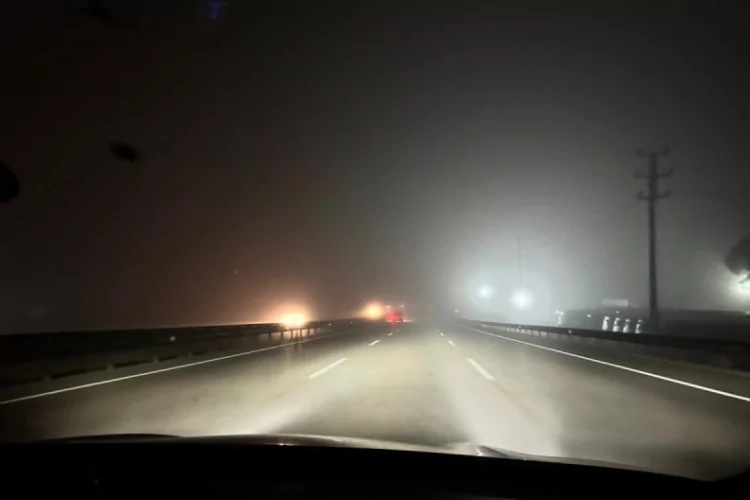 Bursa-İzmir karayolu, etkili olan yoğun sis nedeniyle adeta görünmez hale geldi.